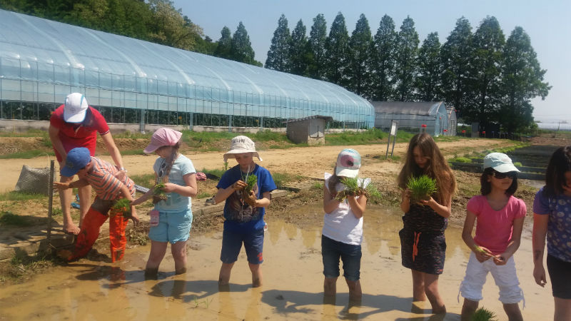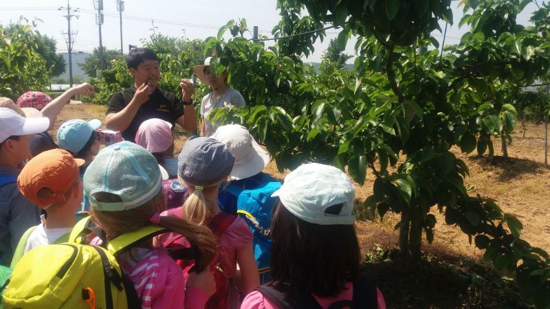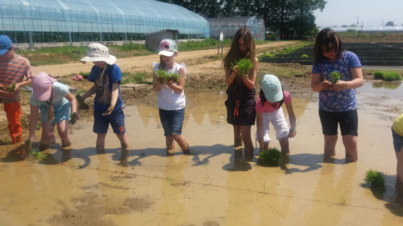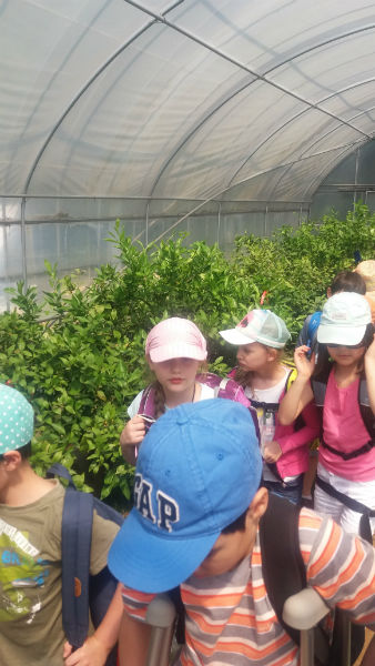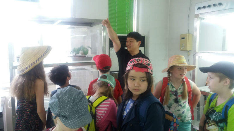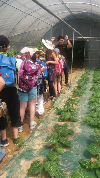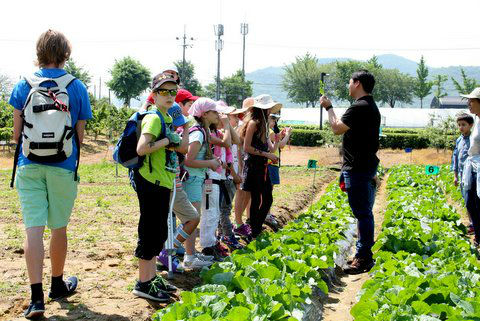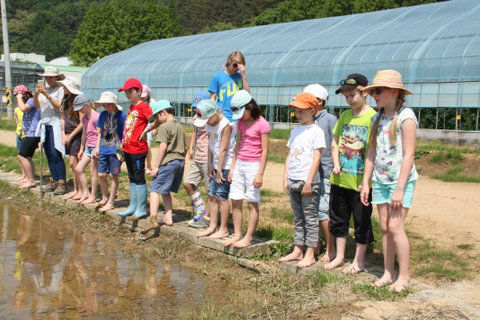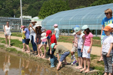 IMG_1571-w800-h600Am 19.5. durfte die 3.Klasse die Versuchsfarm in Pyeontaek besuchen. Zuerst hörten sich die Kinder viel Wissenswertes über den Reis als eines der wichtigsten Grundnahrungsmittel der Welt an. Dann schauten sich alle im Labor ein Gurkenblatt  und die gemeine Spinnmilbe unter dem Mikroskop an. Etwas später betraten wir die Gewächshäuser, die Gemüsebeete und die Obstkulturen. Dabei führten uns Mitarbeiter des Betriebes fachkundig durch das ganze Gelände. Schließlich näherten wir uns dem Highlight des Tages; das Verpflanzen der Reissetzlinge auf dem gefluteten Feld. Ein unvergessliches Erlebnis!