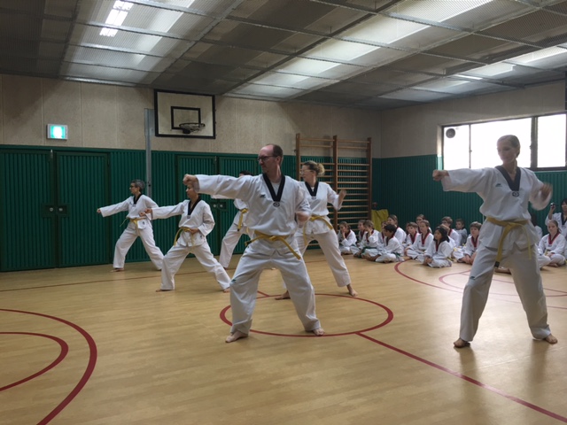 Am 18. Juni hat die Taekwondo-Prüfung an der DSSI stattgefunden. Anlässlich des 40-jährigen Bestehens der Schule wurden als Besonderheit alle Taekwondo-Gruppen, von den Erstklässlern bis zu den Erwachsenen, geprüft.