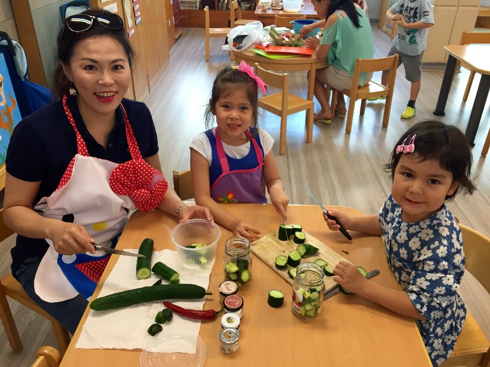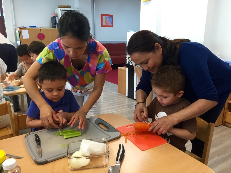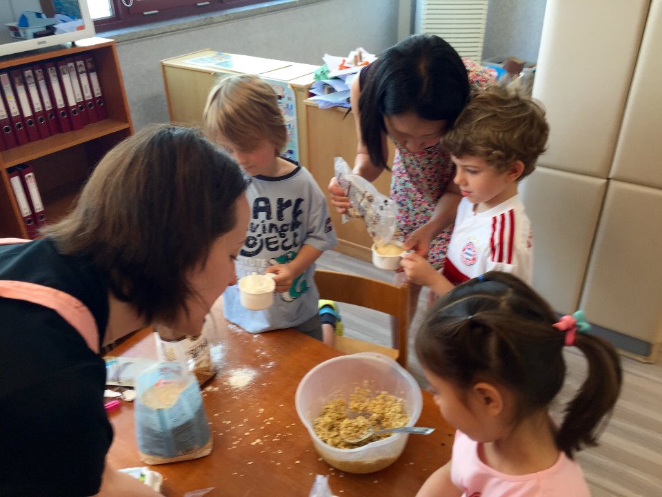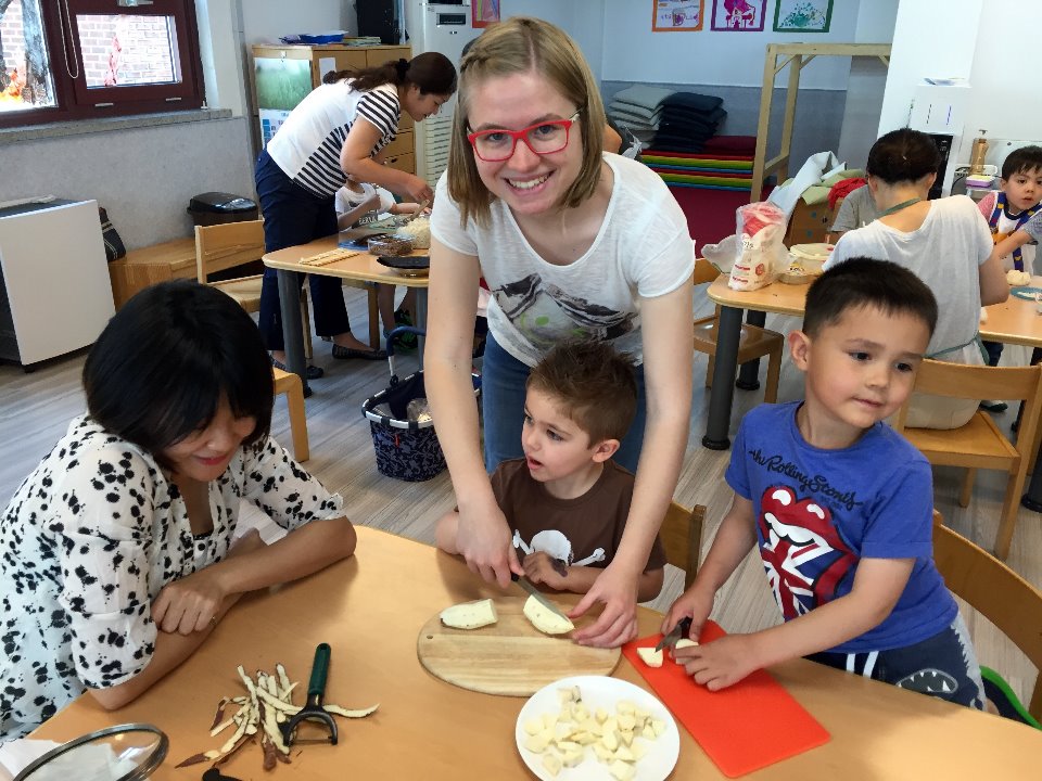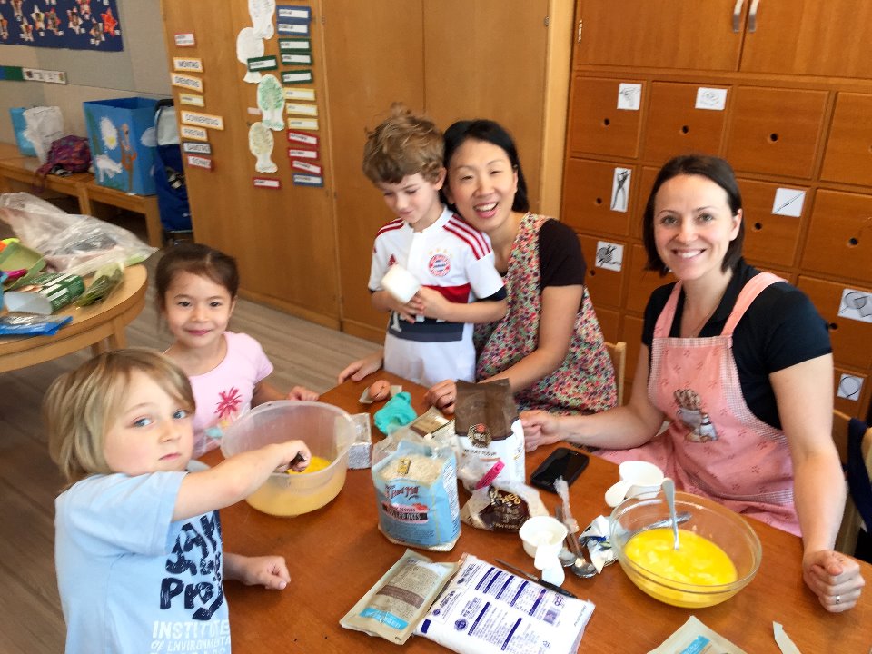 Bei unserem 1. International Lunch Day in der Feuersterngruppe wurde fleißig geschnitten, ausgerollt, gerührt, gebraten, gebacken und gekocht.