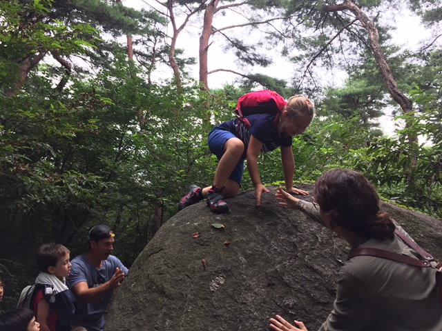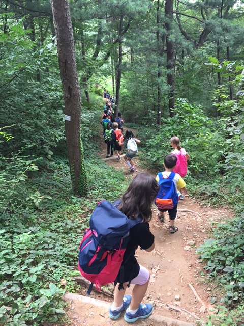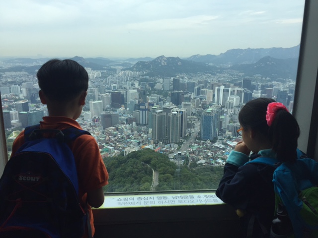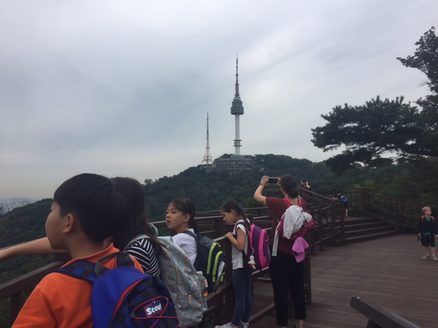 Dieses Mal begaben wir uns auf eine Wanderung zum Namsan Tower. Mit gepackten Rucksäcken und geschnürten Wanderschuhen machten wir uns in der Nähe des Hyatt Hotels auf den Weg, den Namsan zu besteigen. Unterwegs trafen wir Jogger, Eichhörnchen und viele Klettermöglichkeiten. Oben angekommen stärkten wir uns mit einem ausgiebigen Picknick, um dann im Tower mit dem Aufzug hoch zu fahren und die Aussicht zu genießen. Auf dem Rückweg machten wir einen Zwischenstopp auf dem schönen Namsanspielplatz und kehrten gegen 14:15 Uhr erschöpft aber glücklich zur Schule zurück.