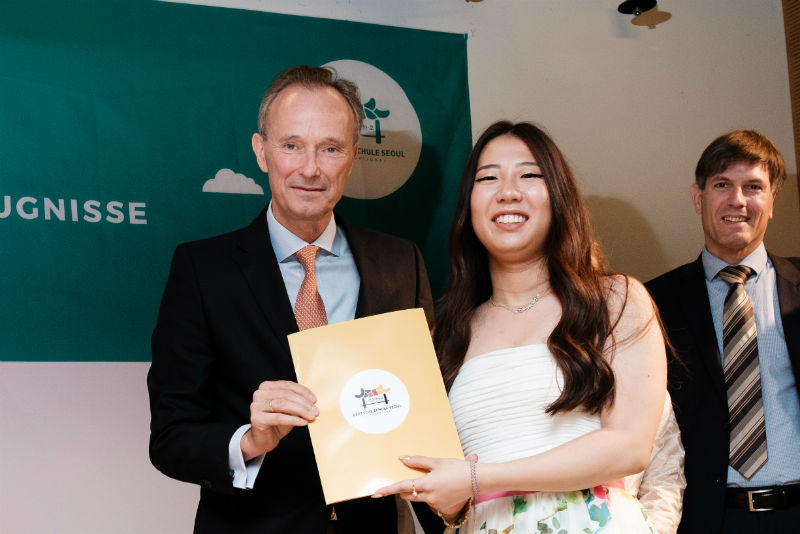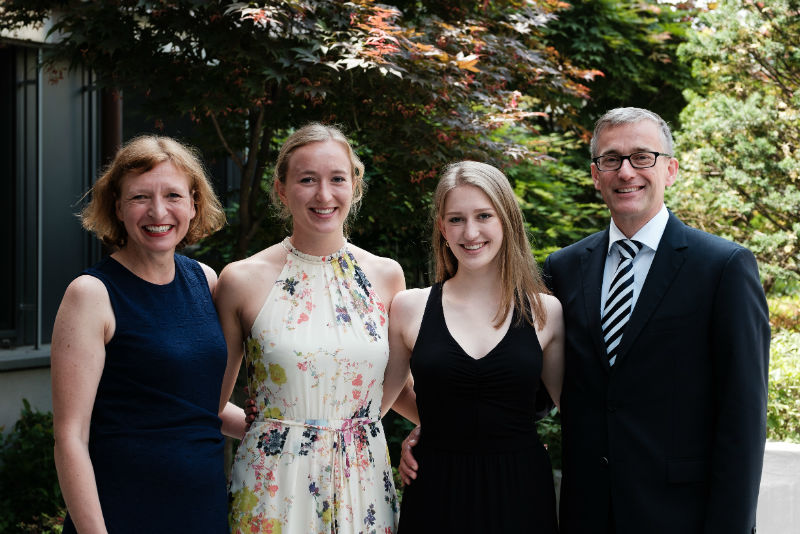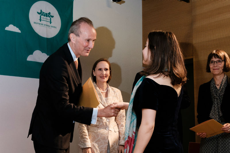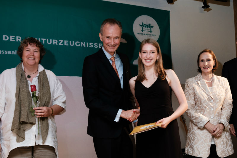 Da auch zwei österreichische Schüler aus dem direkten Umfeld der österreichischen Botschaft erfolgreich das Abitur ablegten, sprachen in diesem Jahr die Entsandten gleich beider Länder ein Grußwort. Sowohl Botschafterin Frau Dr. Elisabeth Bertagnoli aus Österreich als auch Botschafter Herr Stefan Auer aus Deutschland wiesen dabei auf die gute Zusammenarbeit beider Länder hin und beglückwünschten die Schülerinnen und Schüler zum erfolgreichen Abschluss.
