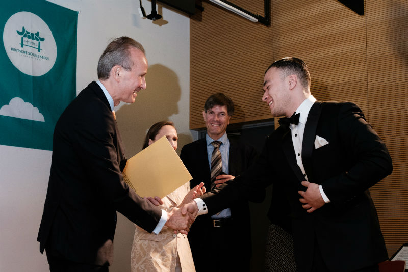 Weitere Glückwünsche wurden von der Beauftragen der Kultusministerkonferenz Frau Eva Busse und dem Schulvorstand der DSSI, vertreten durch seinen Vorsitzenden Herrn Moritz Winkler an die Schülerinnen und Schüler gerichtet. Beide lobten außerdem ausdrücklich die hervorragende Arbeit von Andreas Hilsbos, der die Geschicke der Schule im vergangenen Jahr als kommissarischer Schulleiter erfolgreich gelenkt hatte.