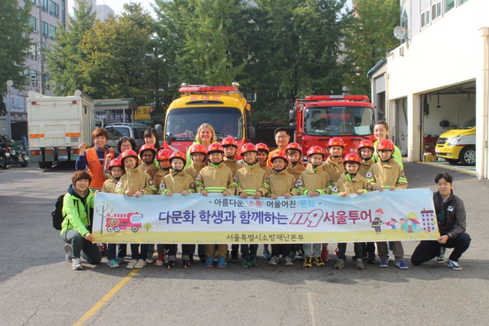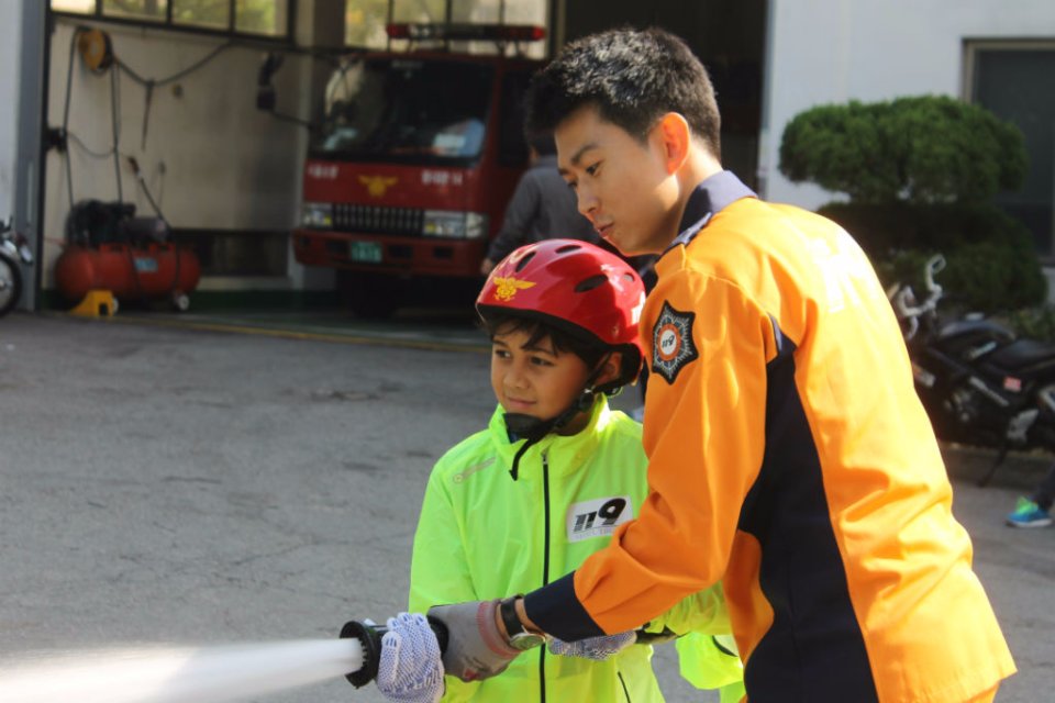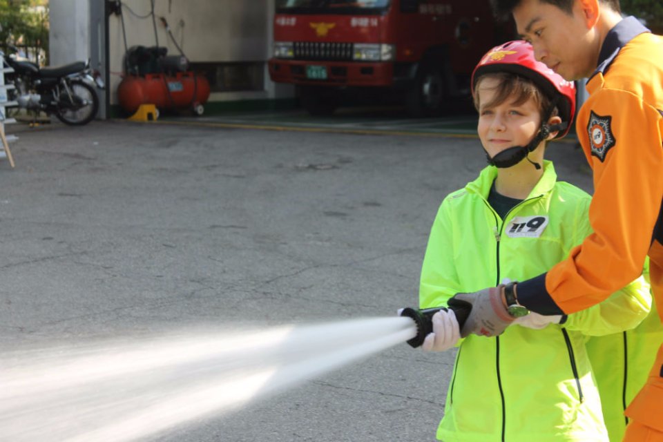 Gestern besuchte die 4. Klasse eine Feuerwehrstation in Seoul. Die Feuerwehrmänner holten die Schüler sogar mit einem Bus von der DSSI ab und versorgten sie zunächst mit tollen knallgelben Jacken. Bei der Feuerwehrstation wurde zunächst ein kleines Aufwärmtraining gemacht. Im Anschluss zogen die Kinder eine richtige Schutzausrüstung an. In Teams ging es nun durch einen dunklen Parkour, um nachempfinden zu können, wie ein Feuerwehrmann in einer Notsituation arbeitet. Die Mitschüler konnten das Geschehen im Dunkelraum über einen Bildschirm verfolgen im Nebenraum verfolgen. Nach dieser abenteuerlichen Klettertour ging es zur Löschübung mit dem Wasserschlauch. Zum Abschluss fuhr der Bus die Viertklässler noch zur zentralen Notrufstation von Seoul. Nach einem erlebnisreichen Vormittag und mit vielen neuen Eindrücken, ging es vergnügt zurück zur Schule.