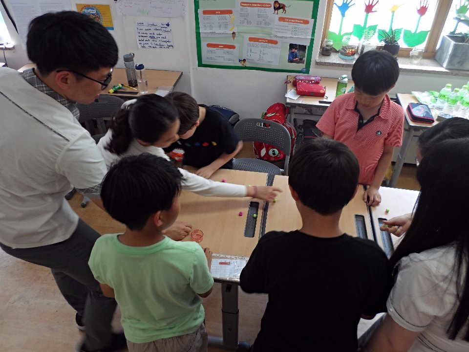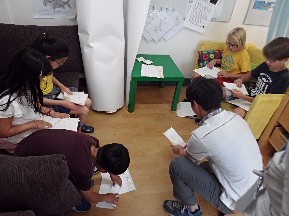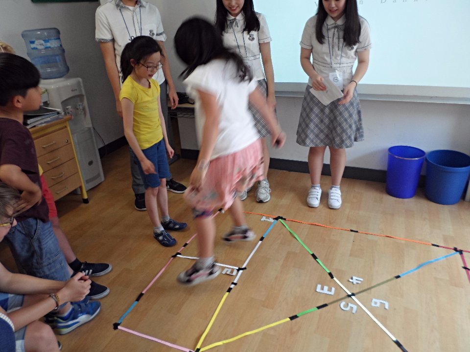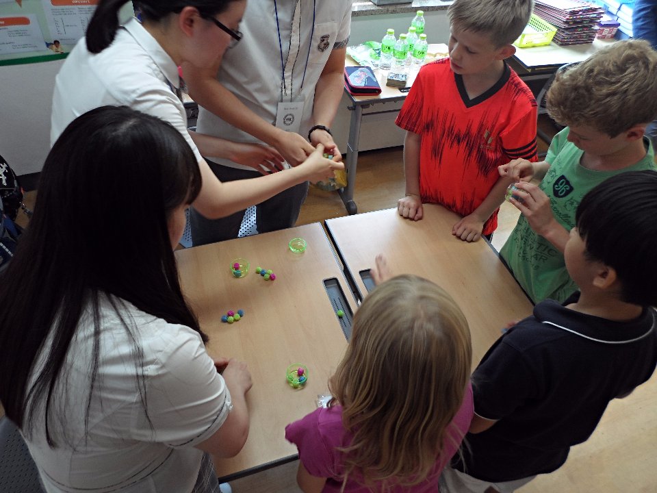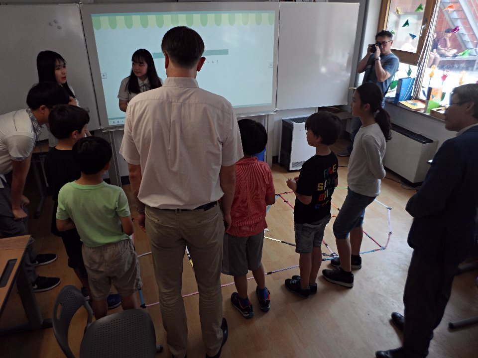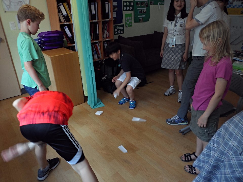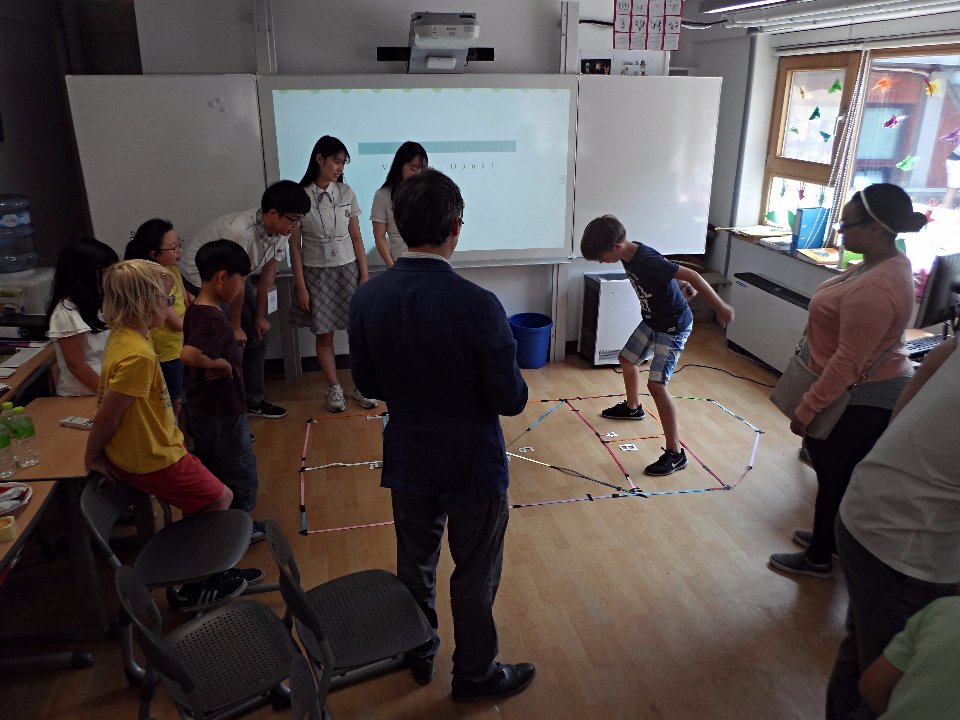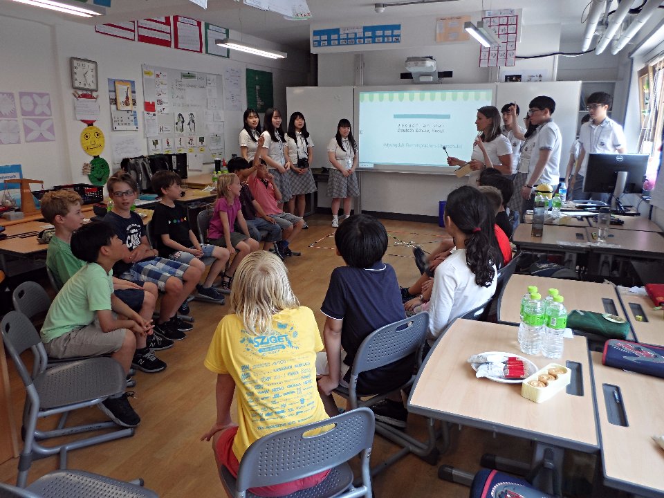 Die Klasse 3 hatte das Vergnügen an einem kulturellen Austausch mit Schülerinnen und Schülern der Myungduk Foreign Language Highschool teilzunehmen. Diese waren mit ihren Lehrern an die DSSI gekommen, um den Kindern die koreanische Kultur näher zu bringen. In einer tollen Präsentation stellten sie uns sowohl sich selbst als auch drei traditionelle koreanische Spiele vor, die im Anschluss natürlich auch ausprobiert werden durften. Die Drittklässler waren voll bei der Sache und amüsierten sich prächtig beim Ddak-Ji, Gong-Gi-Nori, Sabangchigi.