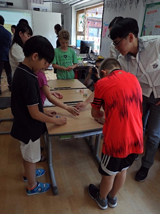 Besonders freuten sie sich, dass sie auch weiterhin beim Gong-Gi- und Ddak-Ji-Spiel ihre Geschicklichkeit trainieren können, da sie die Spielutensilien behalten durften. Unser Dank geht an alle beteiligten Schülerinnen und Schüler der Myungduk Foreign Language Highschool, deren Lehrer und natürlich auch an Frau Kim, die die Veranstaltung für uns ins Leben gerufen hat.