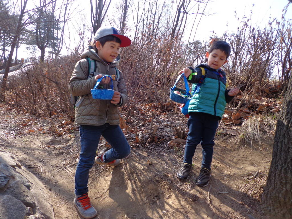 Wie jedes Jahr begeben sich alle Kinder und Erzieher des Kindergartens der DSSI am Mittwoch, den 25. März in den Seoul- Forest zur alljährlichen Osternestersuche. Schon zwei Wochen zuvor hat jedes Kind mühevoll sein eigenes Osterkörbchen hergestellt. Diese wurden dann gefüllt und im Wald versteckt… die Kinder vermuten vom Osterhasen persönlich…!!