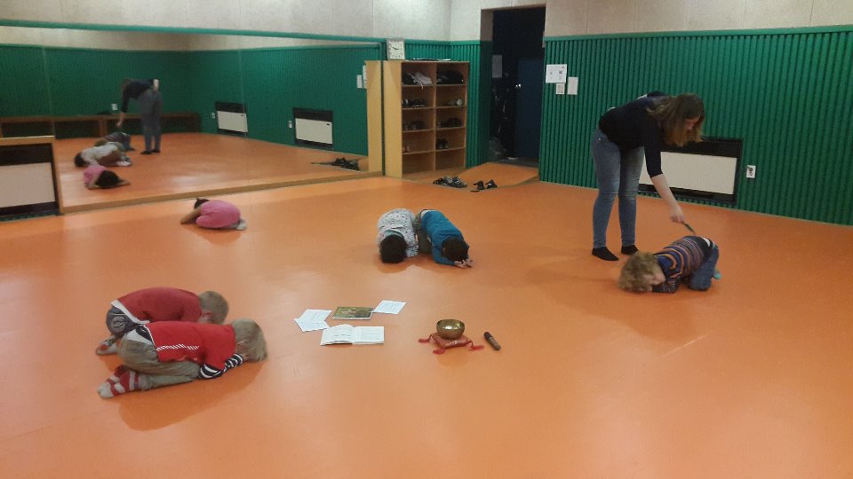 Besonders viel Spaß hatten die Kinder beim Abschlussspiel – dem „Stillen Wecken“. Dabei lagen alle entspannt und mit geschossenen Augen auf dem Boden und warteten darauf, mit einer kitzelnden Feder geweckt zu werden.