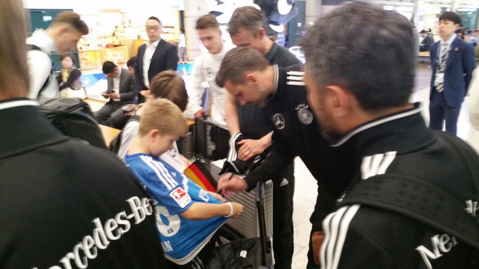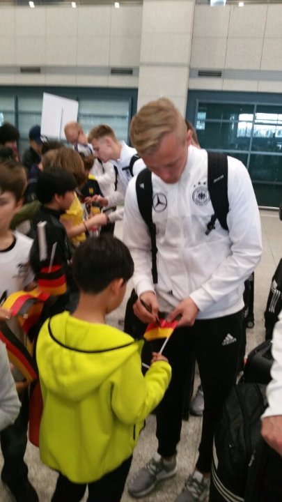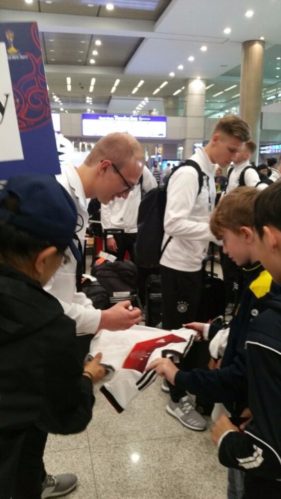 Etwa 40 Schülerinnen und Schüler sowie begleitende Eltern und Lehrer der DSSI haben am 15. Mai mit großer Begeisterung einen Großteil des Deutschen U20 Nationalmannschaftsteams am Flughafen Incheon begrüßt. Die Spieler und Trainer waren von der Fangemeinde sichtlich beeindruckt und haben uns zahlreiche Autogramme gegeben. Zum Schluss gab es noch ein gemeinsames Gruppenbild. Jetzt hoffen wir auf viele erfolgreiche Spiele und ein Public Viewing auf dem Schulhof.